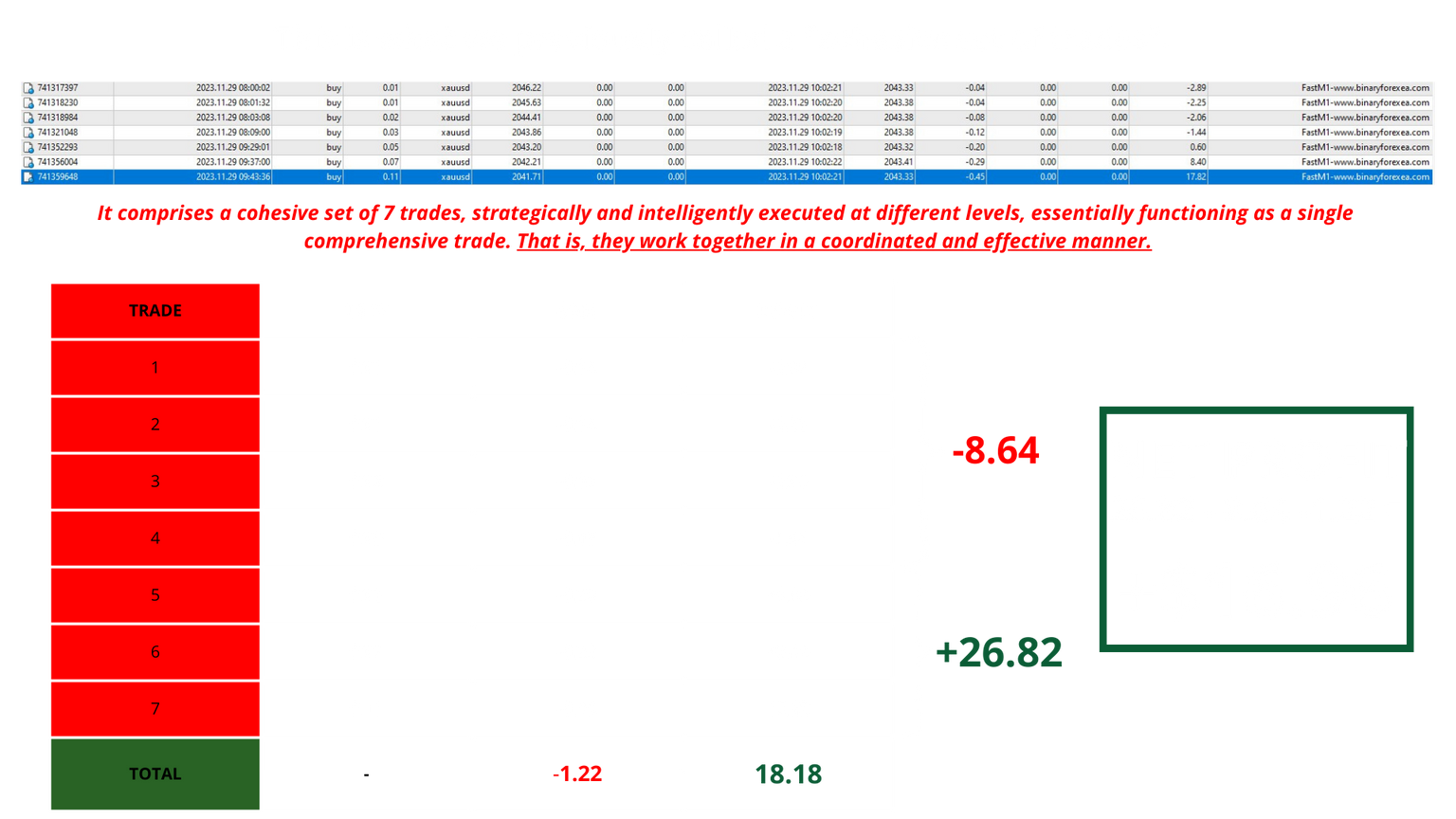 This incredible achievement 107% NET PPROFIT IN 7 TRADING DAYS is not just about rapid growth; it's a testament to our EA's robustness, strategic precision, and adaptability in varying market conditions. Doubling an account in such a short time frame demonstrates the effectiveness of our approach to Forex trading.