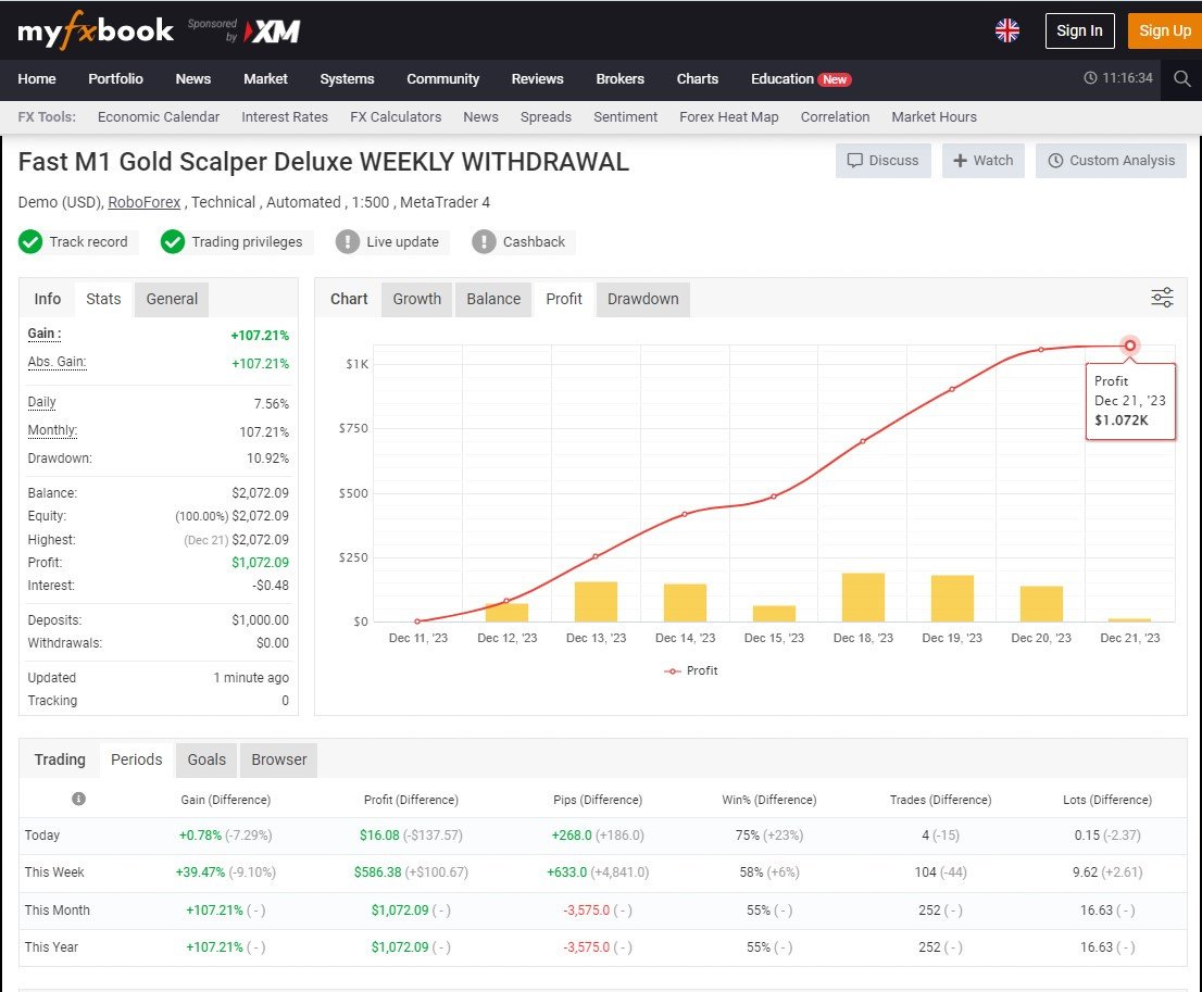 Strategy and Risk Management: While we celebrate this success, we emphasize the importance of strategy and risk management. Our "Fast M1 Gold Scalper DELUXE" employs a balanced approach, maximizing gains while carefully managing risks, ensuring sustainable and responsible trading. REAL WEEKLY DD: 10.92%